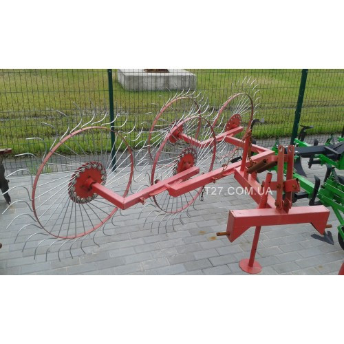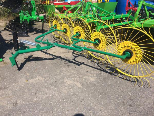 ПІДВИЩЕНА МІЦНІСТЬ РАМИ! ДОСТАВКА БЕЗ ПЕРЕДОПЛАТИ! Граблі-ворошилки 4-колісні та 5-колісні "Сонечко" є важливим навісним обладнанням для мінітракторів, яке виконує одночасно дві функції – розкидання сіна та його збирання. Конструкція, що складається з чотирьох колесно-пальцевих механізмів, розташов...