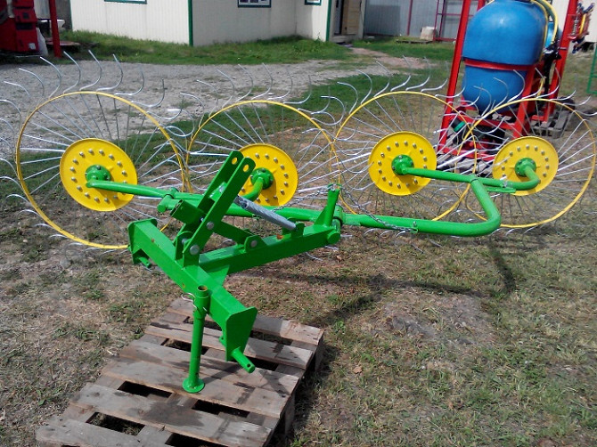 Для агрегатування сіноворошилки необхідний трактор потужністю не менше 25 к.с. зі стандартною трьохточковою навіскою. Підключення граблів до вала відбору потужності не потрібне, оскільки під час руху трактора вони зачіпаються за ґрунт і починають синхронно обертатися. Робочими елементами є пружні па...
