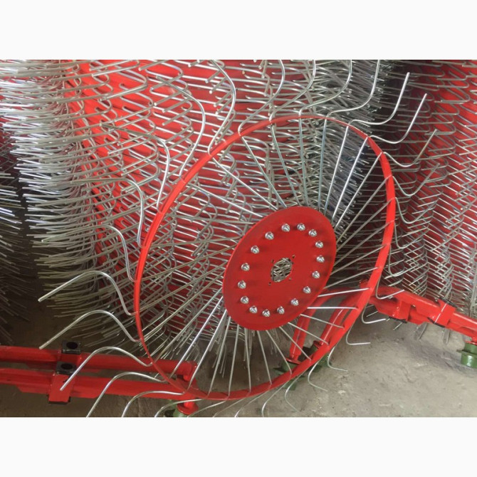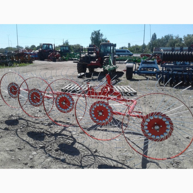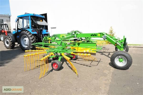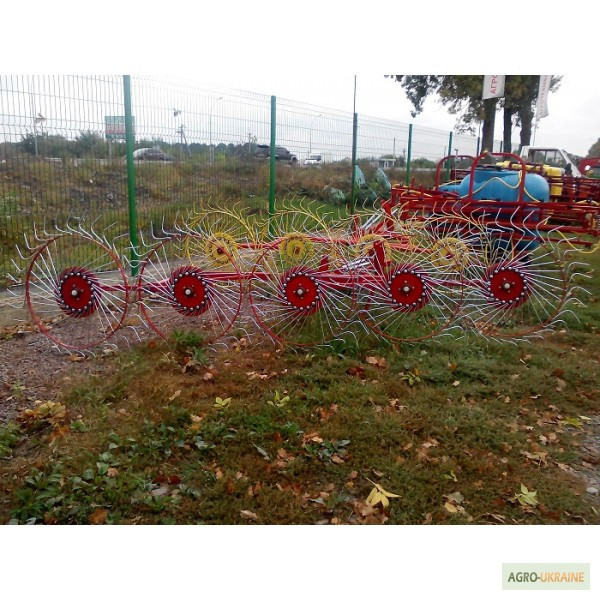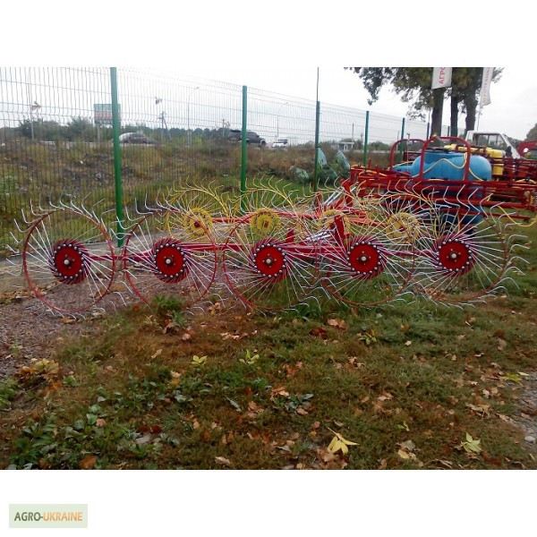 **Гребка соняшникова ворошилка 5-колісна** Гребка соняшникова ворошилка 5-колісна виготовлена у Польщі і призначена для збирання сіна та ворушення його на полі. Ця соняшникова ворошилка має робочу ширину 2,1 м для збору трави та ширину 3,1 м для ворушення та перевертання валків. Технічні характери...