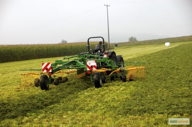 Граблі-сінокосарки з чотирма колесами забезпечують високу якість збору трави (включаючи люцерну) у рихлий, нескручений валок. Використання цього агрегата гарантує швидку та ефективну сушку. Вертикальне розташування робочих коліс дозволяє легко адаптуватися до будь-якого рельєфу ґрунту. Для агрегуван...