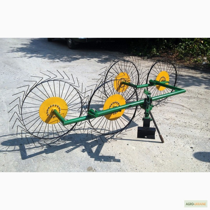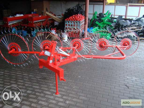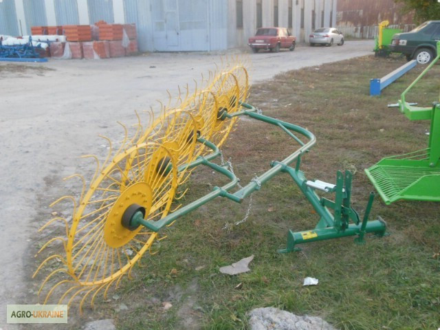 В асортименті представлена вся навісна техніка до мотоблоків і тракторів! Граблі-ворошилки "Сонечко" ГВР-4 призначені для ворошення (перевертання) сіна та збирання його в рулон. Використання цих грабель-ворошилок значно підвищить ефективність роботи з уборкою сіна, прискорить висихання покосеної тр...