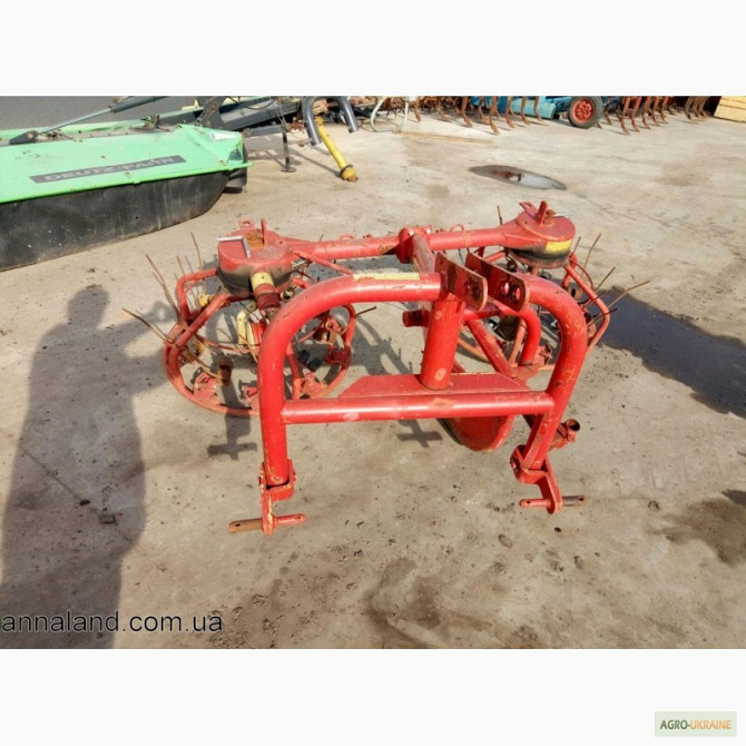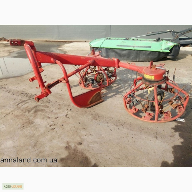 Технічні характеристики: **Тип агрегата:** навісний **Робоча ширина (м):** шевелення 2,61 м, сгребання 2,7 м **Кількість сгребаючих колес:** 4 Опис продукту: Запропонований навісний агрегат є незамінним інструментом для сільськогосподарських робіт. Його робоча ширина складає 2,61 м для ше...