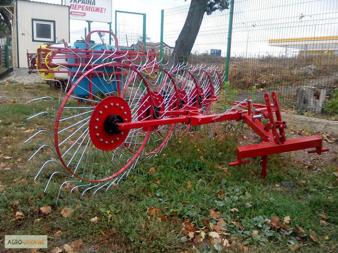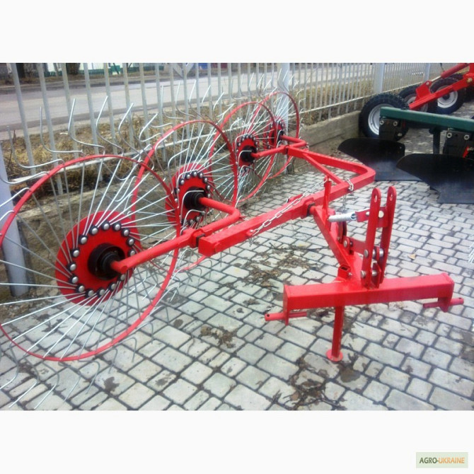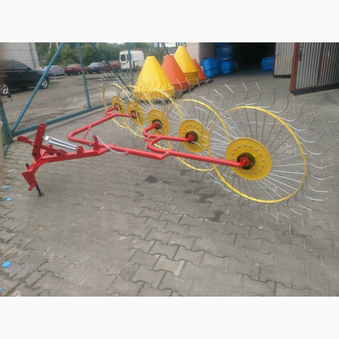 **Технічний опис грабель-ворушилки "Сонечко"** Грабель-ворушилка "Сонечко" - незамінний інструмент для сільськогосподарських робіт, вироблений в Польщі. Цей пристрій доступний у двох модифікаціях: з чотирма колесами за ціною 14000 грн та з п'ятьма колесами за 16000 грн. **Технічні характеристики:*...