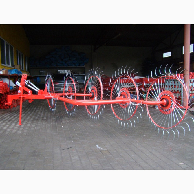 **Технічний опис польської грабарки на 5 коліс** Польська грабарка на 5 коліс - це інноваційний сільськогосподарський інструмент, що призначений для роботи на полях з високим рівнем продуктивності. Ця грабарка виготовлена з високоякісних матеріалів, що забезпечує її надійність та довговічність. Ос...