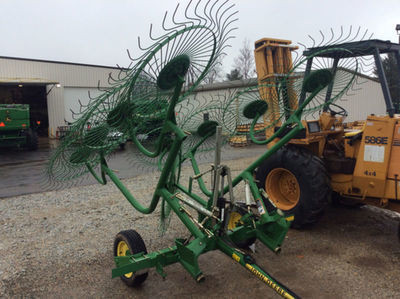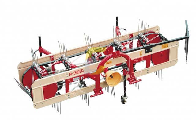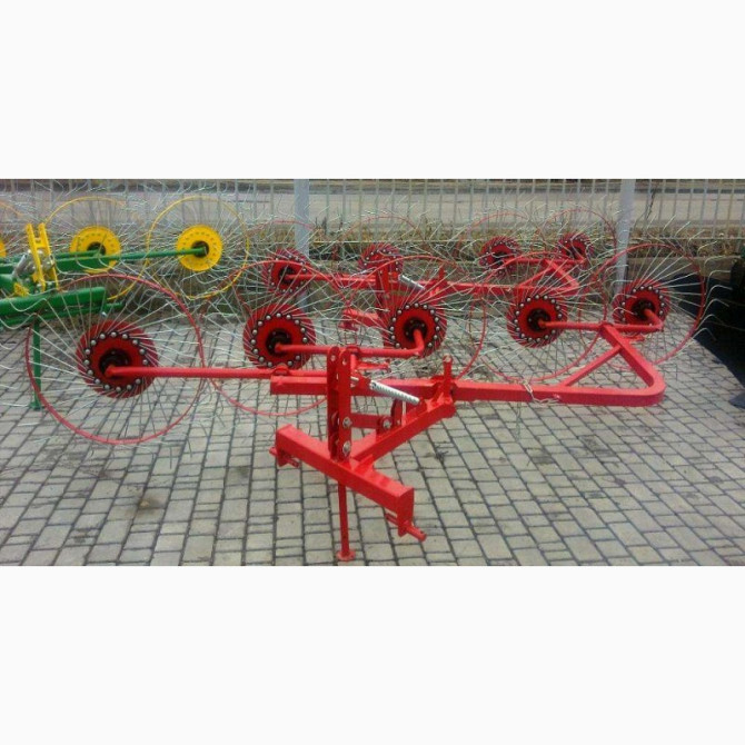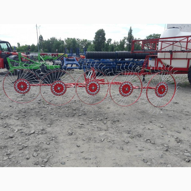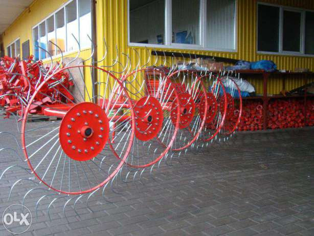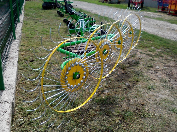 Граблі-ворушилка (валкові) «Сонечко» на 5 коліс призначені для збирання провіяної та свіжоскошеної трави. Цей виріб виготовлено в Польщі. Технічні характеристики: - Ширина ворушіння: 3,7 м - Ширина граблення: 2,9 м - Робоча швидкість: - ворошіння до 12 км/год - грабление до 8,5 км/год - Транс...