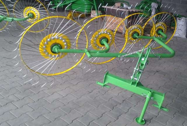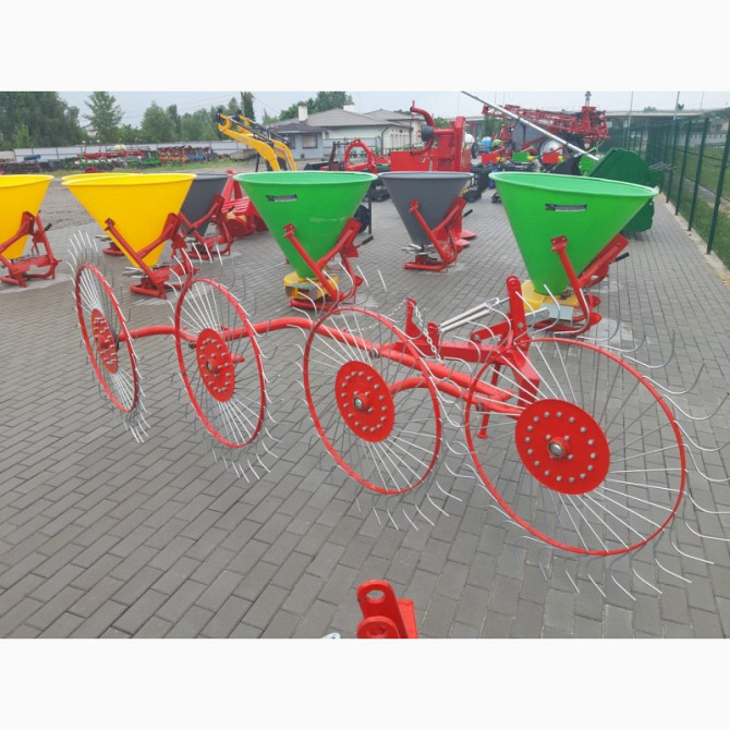 Граблі-ворушилка (валкові) "Сонечко" на 4 колеса призначені для згрібання провіяленої та свіжоскошеної трави. Цей сільськогосподарський інструмент виготовлений в Польщі. Технічні характеристики: - Ширина ворушіння: 2,3 м - Ширина граблення: 1,5 м - Робоча швидкість: - Ворошіння до 12 км/год - Г...