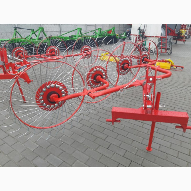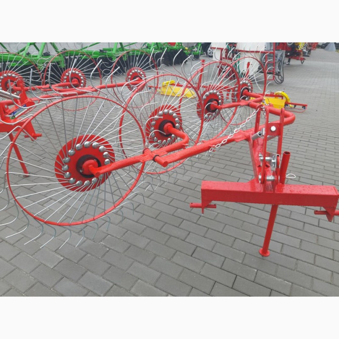Грабліна 4-5 сонечокНові - Кругла рама (усилена) Грабліна 4-5 сонечокНові, виготовлені в Польщі, є ідеальним рішенням для сільськогосподарських потреб. Вони мають круглу раму, яка посилені, що гарантує довговічність та надійність в роботі. Ці граблі призначені як для мінітракторів, так і для тракто...