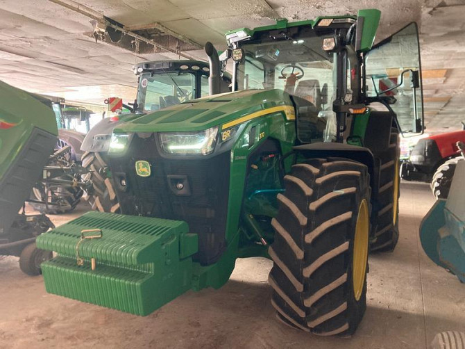 Трактор John Deere8R370Рік випуску - 2022Напрацювання - 380 годинРозширений моніторГідравлічний підсилювач керма5 SCVШинипередні 650/60R34 Шини задні равлічне з'єднанняГальма 3/4 2-лінійна зчіпка з фіксатором гака для 3 в 1В наявності!