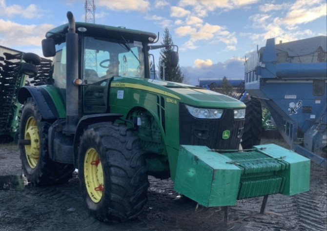 Технічні характеристикитрактор John Deere8310R , 2012 р.вМодельJohn Deere 8310RРік випуску2012Напрацювання, м/рік 12210ДвигунJohn Deere 9.0L 6-циліндрів дизельМаксимальна потужність трактора kW/к.ш2 Shift (APS), 16/4Шасі4WDПотужність зняття ВВП, об/хв1000 Об'єм палевого баку, л714Шині710/70 R42600/7...