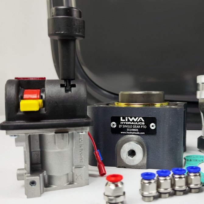 Даний гідравлічний комплект складається з наступних компонентів: 1. Вал відбору потужності ZF 16 S 2520 TD (діаметр 250 мм) від LIWA 2. Коробка відбору потужності ZF-1 (одношвидкісна пряма) від LIWA 3. Гідророзподільник на 4 болти діаметром 1" з продуктивністю 110 л/хв від VEDER 4. Шестеренний насо...