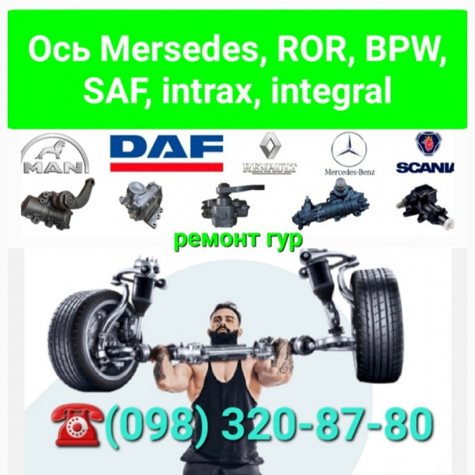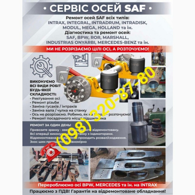 Ремонт та посилення осей для Mercedes-Benz У нашому сервісному центрі ми пропонуємо професійні послуги з ремонту та усилення осей для транспортних засобів Mercedes-Benz. Наші кваліфіковані фахівці спеціалізуються на відновленні осей інтракса, інтеграла, гусака, качелі, ремонту осей причепів, напівп...