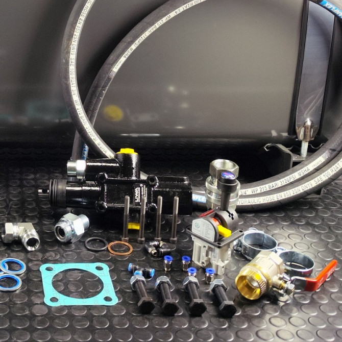 Комплект гідравліки Hyva для коробки передач ZF Комплект гідравлічної системи дозволяє адаптувати вантажні автомобілі для різноманітних спеціалізованих завдань, таких як підйом кузова самоскида, встановлення маніпулятора чи крана, створення підйомного підлоги у кузові або обладнання сміттєвоза для ...