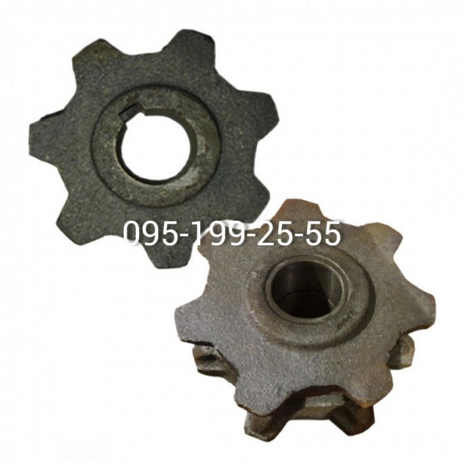 **Звездочка бітера (одинарна), звездочка натяжна (одинарна), ланцюг роликовий (одинарний) T-19,5 - корморозподільник КТУ-10** У цьому технічному описі розглядаються ключові компоненти та характеристики корморозподільника КТУ-10, включаючи звездочку бітера, звездочку натяжну та ланцюг роликовий T-19...