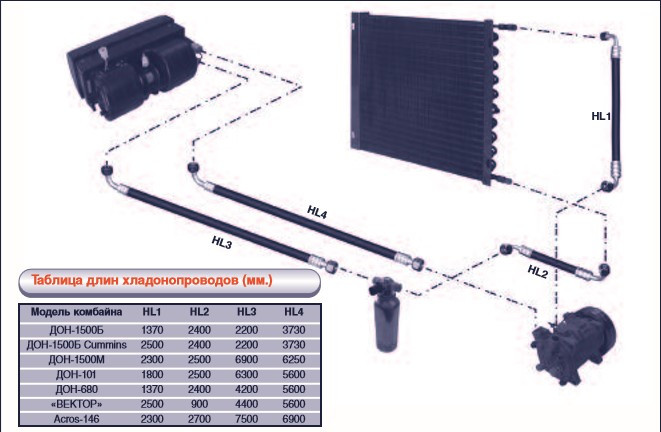 **Технічний опис комплекту хладонопроводів для кондиціонерного агрегату "Комбайн Дон 1500 Б"** Даний комплект хладонопроводів призначений для забезпечення оптимальної роботи кондиціонерного агрегату "Комбайн Дон 1500 Б". Він складається з чотирьох шлангів різної довжини та діаметру для з'єднання рі...