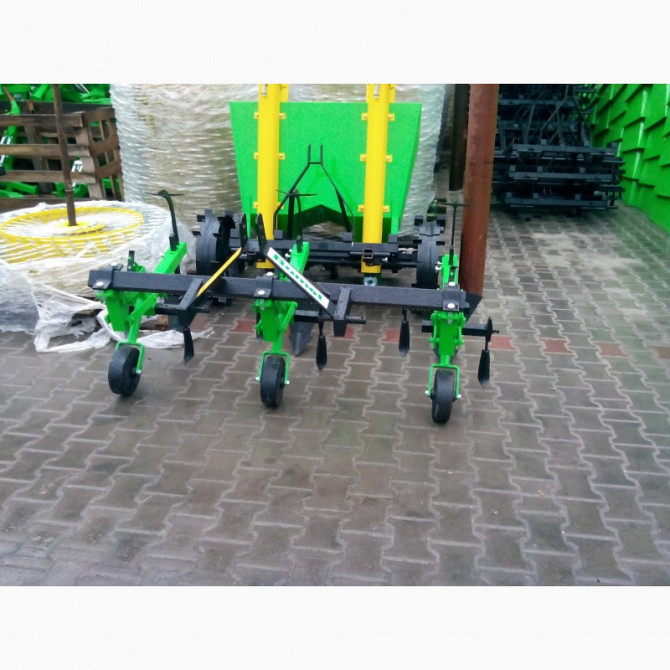 У продажі представлений міжрядний культиватор-окучник, призначений для обробки міжрядь у посадкових рядках картоплі. Продукт включає в себе такі компоненти, як культиватор, плуг, картоплесаджалку, косилку, картоплекопалку, фрезу, дискову борону, лійку та віз. Технічні характеристики продукту: - Ро...