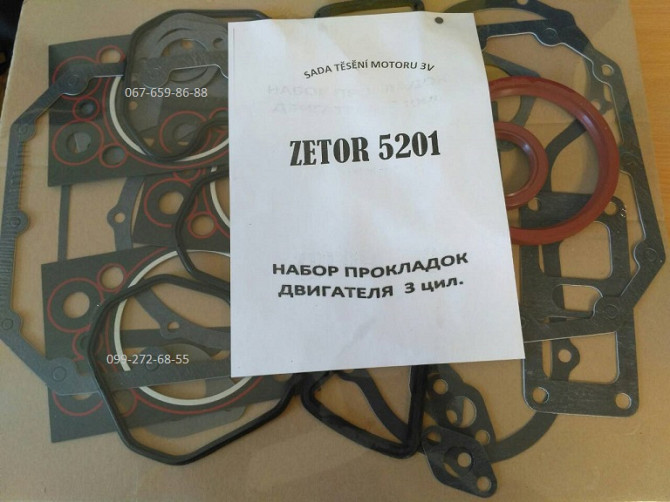 **Технічний опис набору прокладок для двигуна Zetor Zetor 5201** Набір прокладок для двигуна Zetor Zetor 5201 є важливою запчастиною для забезпечення ефективної роботи та надійності двигуна трактора. Цей набір містить у собі широкий асортимент прокладок, сальників колінвала та резинок для кришок кл...
