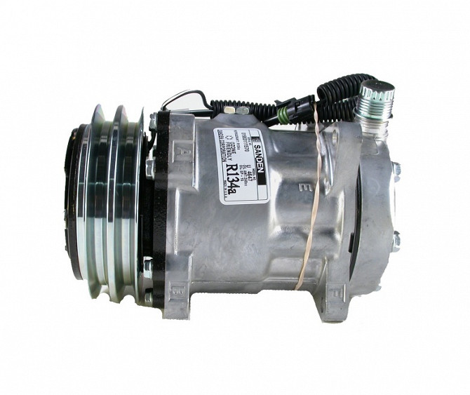 Модель компресора: 4499, 4768, 4768E. Застосовується для с/г і спецтехніки Клаас, Нью Холланд, Кейс. прямий, 12В 1 дріт;OEM #: 317008A3, 86993463;Сімейство компресорів: SD7H15shd;Тип кріплення: SD7 direct Long (4 наскрізні вуха);Хладагент: R134a Напрям обертання: в обидві сторони;. Кут порту: H;; Ро...