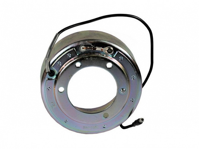 Котушка електромагнітна 12/ 24 В. компресора кондиціонера SD5H14 Характеристика: Зовнішній діаметр (мм) 103; Внутрішній діаметр (мм) 72; Висота (мм) 38.5; Категорія ЕМ котушка;Компресор 5H14;Марка Універсальна;Напруга (Вольт) 12/ 24;Посадкове місце 50;Виробник компресора SANDEN.