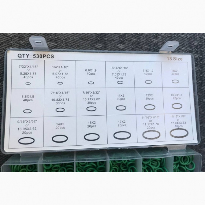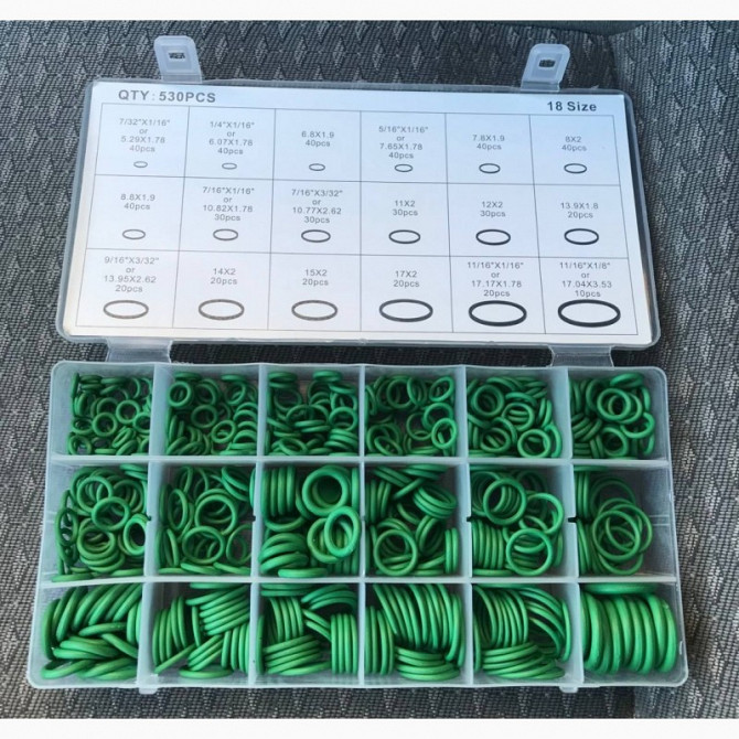 Набір Ущільнювальних Кільців HNBR 530 штук: Забезпечте Надійність та Довгий Термін Служби Вашої Кондиціонерної Системи! Виготовлені з високоякісного матеріалу HNBR, вони спроектовані для роботи з холодоагентами R134 і R404. Характеристики: Тип кільця: O-Ring 78 - 40 штук 6,8 * 1,9 - 40 штук 7,68 * 1...