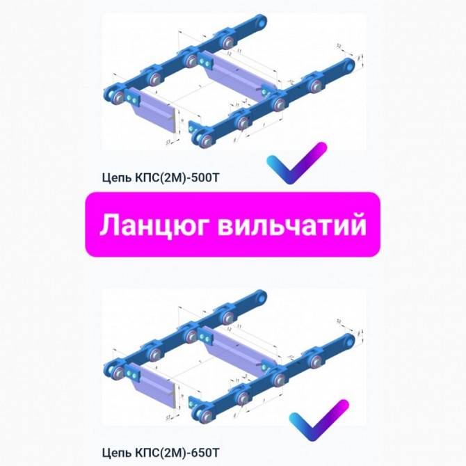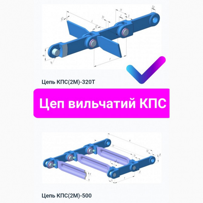 Ланцюг тяговий вильчатийКПС-200,КПС-320, КПС-400,КПС-500ланцюги конвеєрні з зануреними скребками, а також запчастини та комплектуючі до них: КПС-200-100, КПС-320-100, КПС-40- 200-160, КПС-320-160, КПС-400-160, 2КПС-200, 2КПС-320, 2КПС-400, КПС-200Т,-320Т,-500Т,-650Т, КПС-800, КП 500Т (у зборі), КПС(...