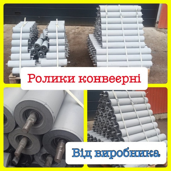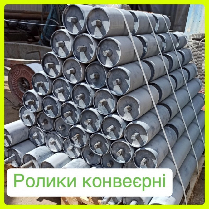 Ролики конвеєрні виготовляються різного діаметра (57, 89, 102, 108, 127, 159). Роликоопори складаються з 2-х чи 3-х роликів. Також можливе виготовлення за кресленнями Замовника! Стрічка норійна різної ширини.