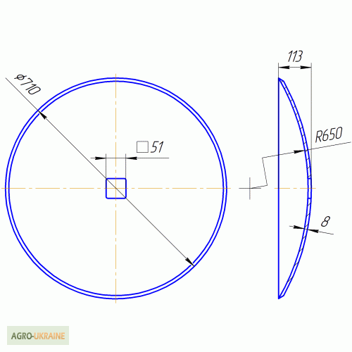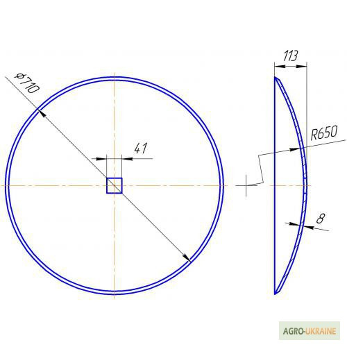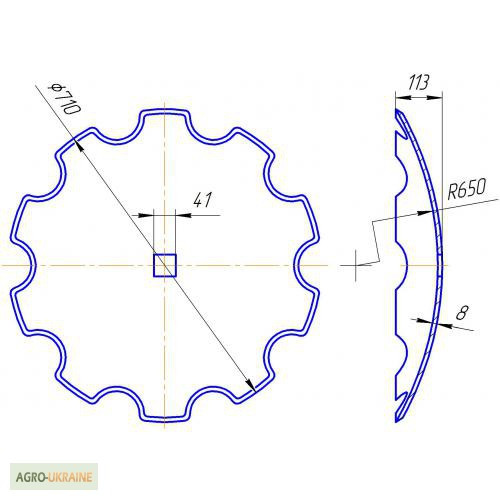 Для важких ґрунтів різного механічного складу. - Диск борони вирізний, зовнішній діаметр 710 мм, внутрішній квадрат 41х41 мм (під вісь 40х40 мм), 10 зубів, товщина 8 мм, вага 24 кг, - Диск борони сферичний, зовнішній діаметр 710мм. 41х41мм (під вісь 40х40 мм), гладка кромка, товщина 8 мм, вага 26,3 ...