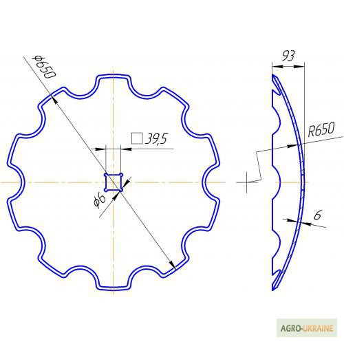 Краща якість, яка тільки можлива в Україні! внутрішній отвір діаметром 46 мм, не вирізний, гладка кромка, товщина 6 мм, вага 15 кг; зубів, товщина 6 мм; 4) Диск борони БДТ-4,2, зовнішній діаметр 650мм, внутрішній квадратний отвір 42х42 мм, не вирізний, гладка кромка, товщина 8 мм, можливе виготовлен...