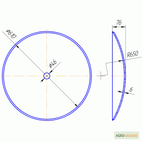 Реальна конкуренція імпорту! Вища якість України! Виготовляємо диски, згідно оригіналу. Диск борони, зовнішній діаметр 610 мм, внутрішній отвір діаметром 46 мм, гладка кромка, товщина 6 мм. (Колишній ГОСТ) Переваги: - Використовується з ресорно-пружинна сталь марки 65Г та її аналоги із вмістом марга...