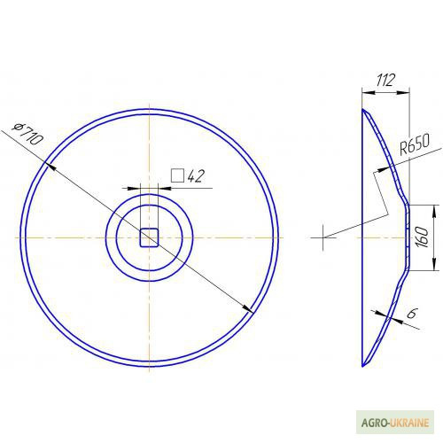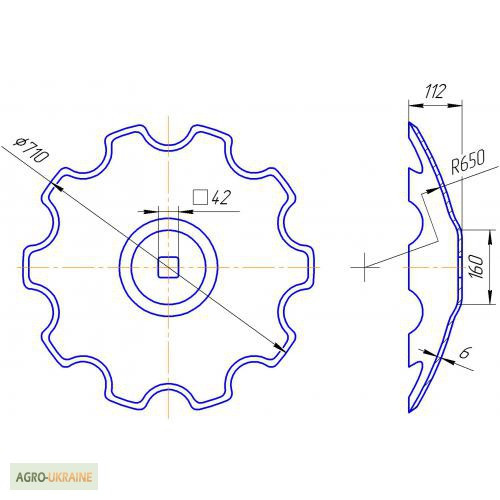 Виробництво ґрунтується на технологіях Державного стандарту України! (колишній ДЕРЖСТАНДАРТ)-Диск боронивирізний, зовнішній діаметр 710 мм, внутрішній квадрат 42х42 мм, 10 зубів, товщина 6 мм, вага 19 кг,- Диск борони сферичний, зовнішній діаметр 710 мм, внутрішній квадрат 42х42 мм, гладка кромка, т...