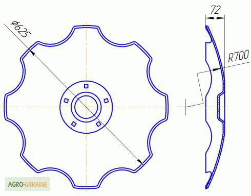 Конкуруємо з імпортом! Вища якість України! Виготовляємо диски старого нового зразка! Варіант 1: Диск борони вирізний, зовнішній діаметр 625 мм, 5 квадратних отворів 13х13 мм під маточину, 8 зубів, товщина 6 мм, вага 13,5 кг діаметр 625 мм, 6 квадратних отворів 13х13 мм під маточину, 8 зубів, товщин...