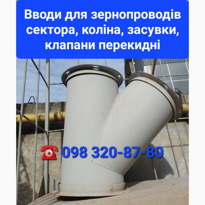 Введення односторонній симетричний для зернопроводукут нахилу 90 градусіввиконання 2-3ммвласне виробництвовведення круглого сечення діаметром від 150 до 400 мм замовляйтетуба самопливназасувка рейковаклапан перекиднийфланцінорія зернова