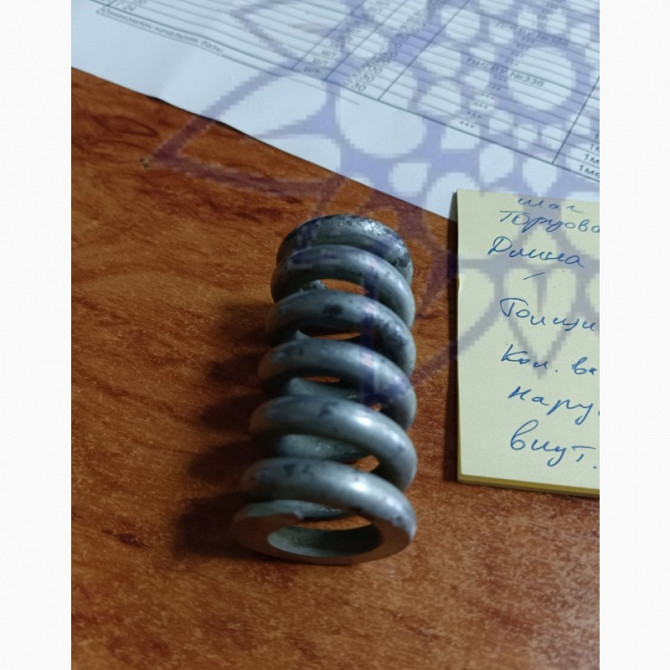 Пружина стискання гартована.Торцована із двох сторін.Довжина 56 мм.Товщина проволоки 6 мм.Кількість витків 6 шт.Зовнішній діаметр 275 мм.Внутрішній діаметр 15,5 мм. Матеріал Сталь 70.Пружини на замовлення.Залежно від толщини прутка, можливе використання сталі марки 60С2А та її аналогів.Висока якість...
