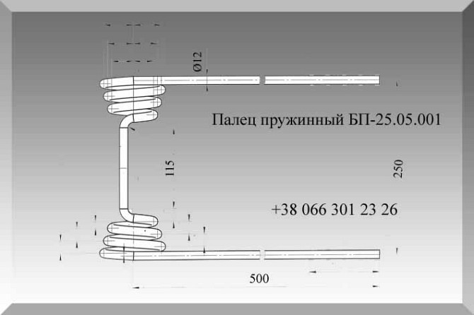 ### Технічний опис продукту: Палец пружинний БП-25.05.001 від Уманьферммаш Палец пружинний БП-25.05.001 призначений для середньої пружинної борони БП-25, виготовлений на заводі Уманьферммаш. Виріб виготовлений з проволоки діаметром 11/12 мм, використовується сталь 60С2А (згідно з ГОСТ 14963-78). Пі...