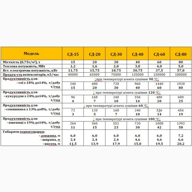 Уведення в експлуатацію 2012-2013 років, згодом використовувалась протягом трьох років, після чого була замінена у зв'язку із збільшенням потужностей підприємства. Наразі зберігається в розібраному стані. Додаткові фотографії надамо за запитом. **Техніко-економічні характеристики зерносушарки UGT:*...