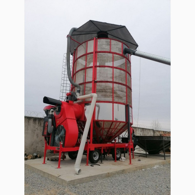 Зерносушарка працює в потоковому (неперервному) режимі та здатна знижувати вологість зерна на 15% і більше за один прохід. Завдяки точному управлінню температурою, сушарка ефективно сушить не лише кукурудзу, а й сою, ріпак, соняшник та інші культури. Універсальна форма перфорації решіток з нержавіюч...