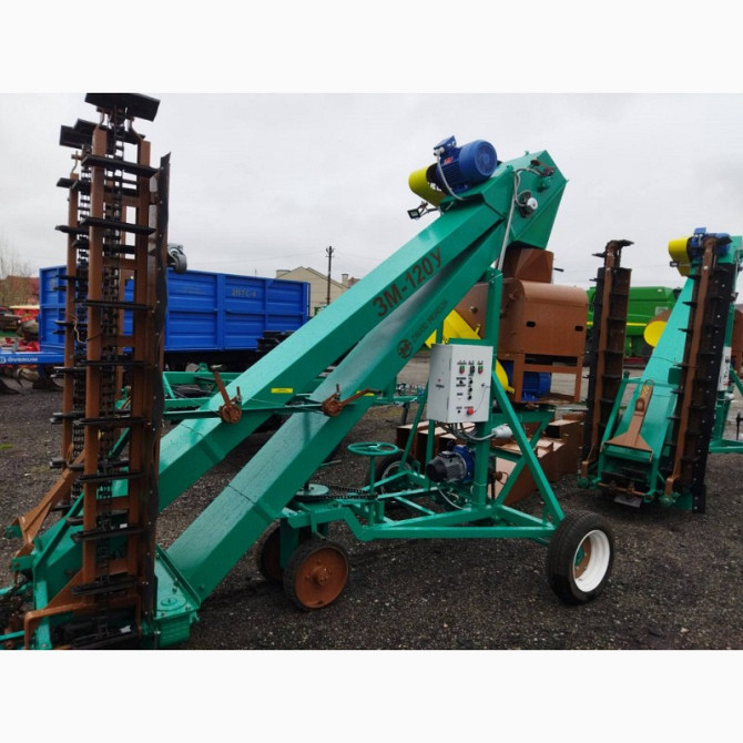**Самопересувний зернометач ЗМ-120У: Технічний Опис та Характеристики** Самопересувний зернометач ЗМ-120У розроблений для ефективного завантаження зерновозів з будь-якої висоти. Цей пристрій відрізняється підвищеною продуктивністю та дальністю метання завдяки використанню стрічки з шевроном (який м...