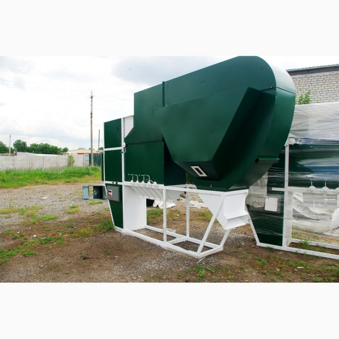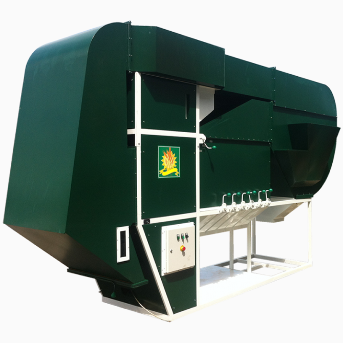 Високоефективна машина для обробки насіння соняшнику відокремлює насіння, відкидає відпади і потім відокремлює оболонку. Завдяки великій площі сіток, насінниця дозволяє відокремлювати оболонку до 17% при нульових втратах відпадів і олійної пилу. Оброблені насіння, відпади та пил потрапляють у печі д...