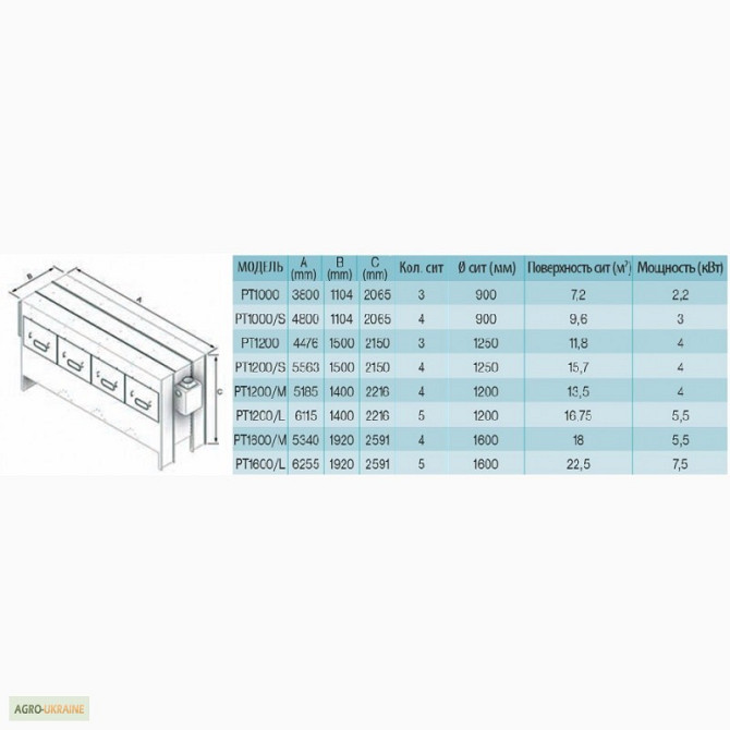 Барабанні очисники PT призначені для передочищення зерна від важких домішок перед основною обробкою. Вони виготовляються відповідно до вимог Директиви 2006/42/CE та постачаються відповідно до Директиви 94/9/CE для використання в потенційно вибухонебезпечних середовищах. Принцип роботи полягає у том...