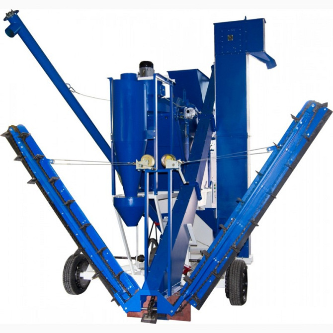 **Технічний опис Зерноочистительного комплексу САД** **Назначення:** Зерноочистительний комплекс САД призначений для очищення та калібрування будь-якого зерна у умовах складу чи току, де необхідно завантажувати зерно з борта або біг-бега та виводити готовий чистий матеріал і відходи. Самохідний ком...