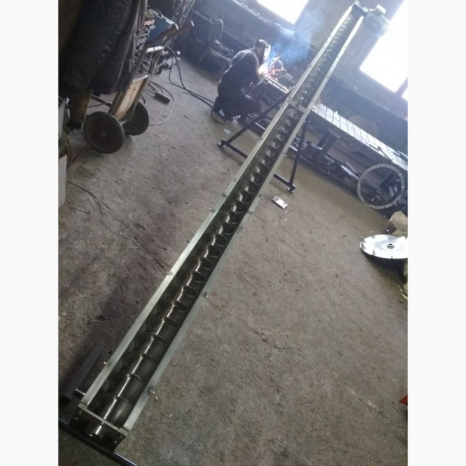 Технічний опис: Шнекові транспортери з відкритим гвинтом в місці завантаження призначені для ефективного та безперервного забору вантажу з боку конструкції. Ці шнекові транспортери мають діаметр гвинта 108 мм та виготовляються в трубі, кожен метр погонний шнека має окрему ціну. Привід для руху шне...