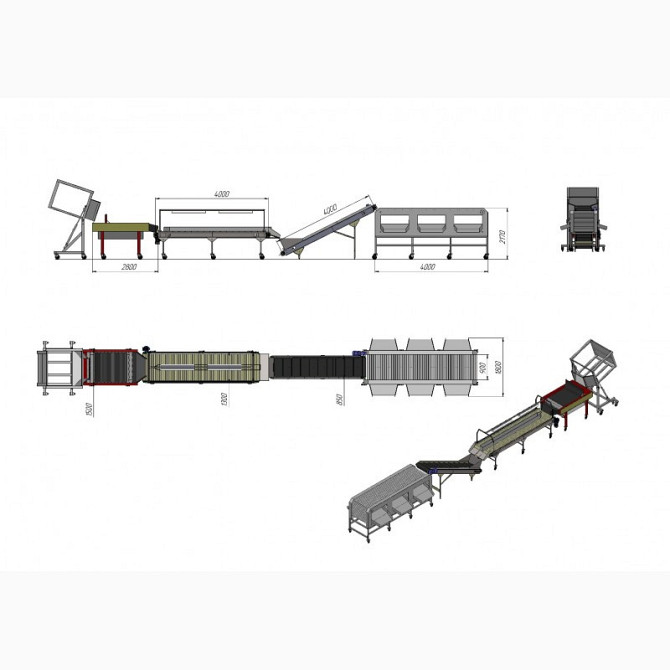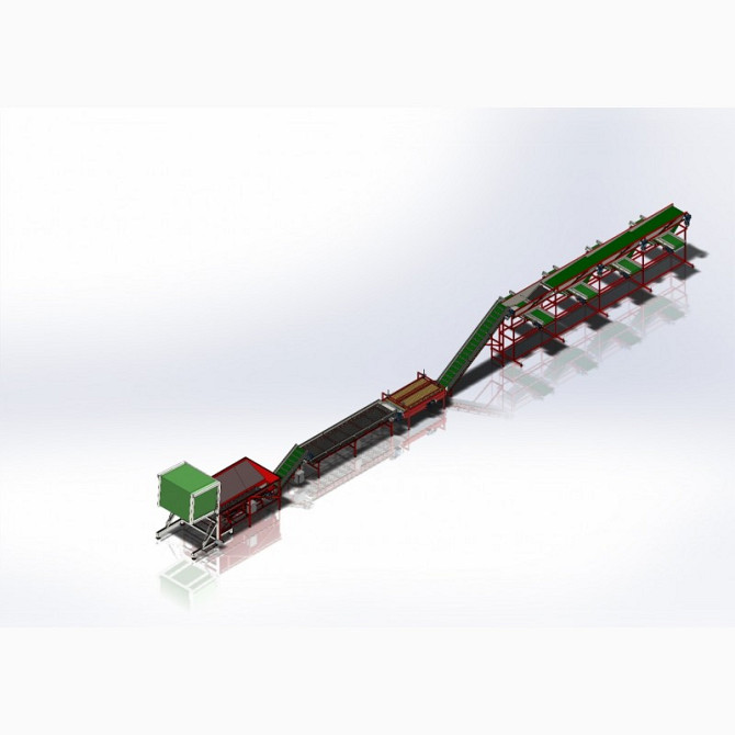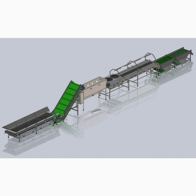 Сортировочная линия дляовощейизготавливается под заказ и может включать в себя следующие участки:1) Участок приема продукции, с опрокидывателем контейнеров, приемным конвейерным бункером, подъемным ленточным конвейером для подачи продукции для дальнейшей обработки; 2) Участок сортировки продукции, к...