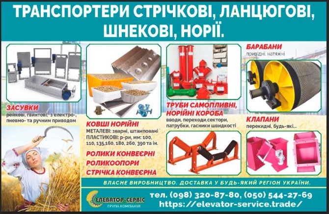 Ми спеціалізуємося на виготовленні обладнання для зернопереробних комплексів, яке включає в себе різноманітні моделі продукції. Наш асортимент включає в себе наступні продукти: 1. Норії: Ми виготовляємо норії в діапазоні від 5 до 100 тонн на годину. 2. Транспортери: У нас є скребкові та стрічкові т...