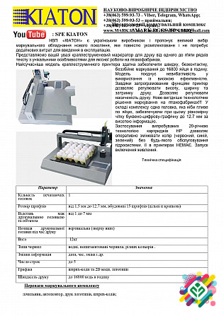 Краплеструменевий маркірувальник для друку від одного до п'яти рядків тексту призначений для якісної маркування на птахофабриках. Сучасна модель краплеструменевого принтера забезпечує швидке, безконтактне та безперебійне маркування до 16800 яєць за годину. Цей принтер поєднує в собі невимогливість ...