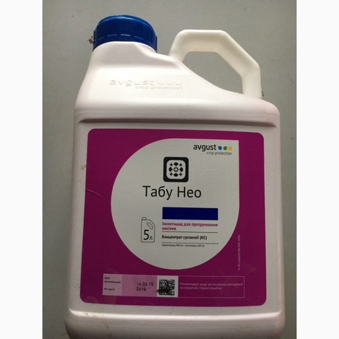 Табу® Нео - унікальний двокомпонентний інсектицидний протруйник для захисту від грунтових і наземних шкідників. Діючі речовини: імідаклоприд 400 г/л, клотіанідин 100 г/л Тип дії: Комплексний Препарат-оригінал: Табу Нео Виробник: Август Тарна одиниця: 5л., ціна вказана за 1л. Культури, на яких викор...