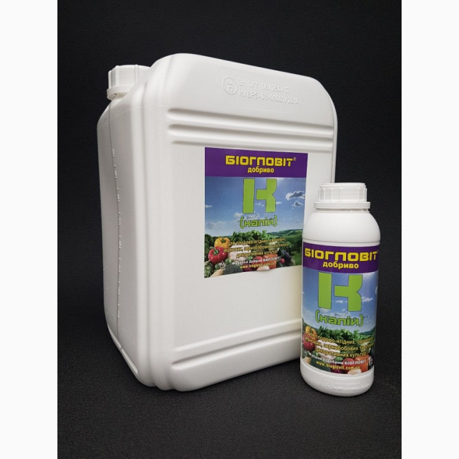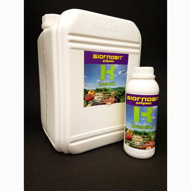 Добриво рідке "Біогловіт" Калій склад: не менше ніж K (калій) – 360 г/л, N (азот) – 40 г/л, полісахариди – 28 г/л. Призначення: Концентроване калійне мікродобриво в легкозасвоюваній формі, використовується при інтенсивних технологіях вирощування сільськогосподарських культур для кореневої, позакорен...