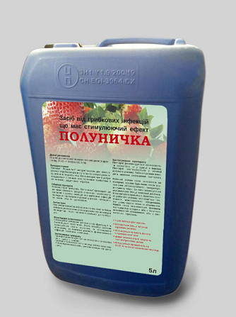 Засіб від грибкових інфекцій "Полуничка" є стимулятором росту та розвитку рослин. Діючими речовинами цього препарату є водний розчин солей поліалкіленгуанідинів (гідрохлорид, 28 г/л + гіпофосфіт, 2 г/л). "Полуничка" використовується для позакореневої обробки рослин на ранніх етапах росту, під час ц...