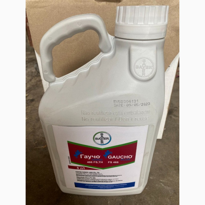 Гаучо® Плюс - Двокомпонентний інсектицидний протруйник для насіння. **Характеристики:** - **Діюча речовина:** Імідаклоприд 233 г/л + Клотіанідин 233 г/л - **Препаративна форма:** концентрат, що тече, для обробки насіння - **Виробник:** Bayer (Німеччина) - **Об'єм:** 5 л - **Ціна за 1 л** **Механі...