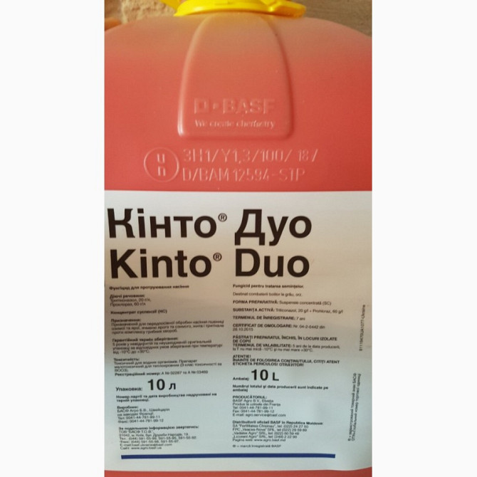 **Кінто® Дуо** - селективний протруйник для дезінфекції грунту та знезараження насіння. Він не несе ризику пошкодження сходів після безпосереднього протруювання. **Культури**: пшениця - озима, яра, ячмінь - озимий, ярий. **Норма витрати**: 2,0 - 2,5 л/т насіння. **Виробник**: BASF, Німеччина. ...