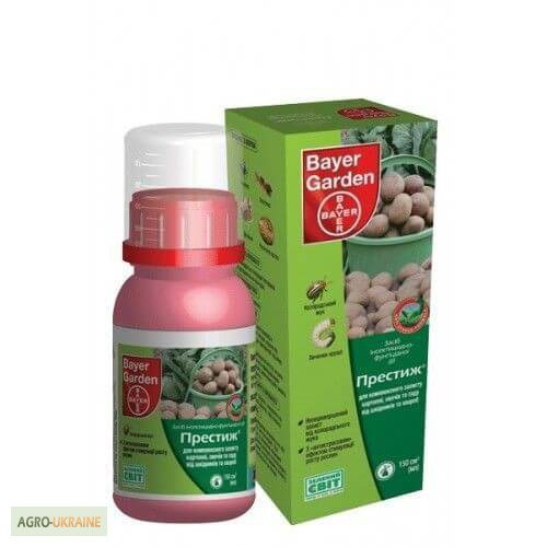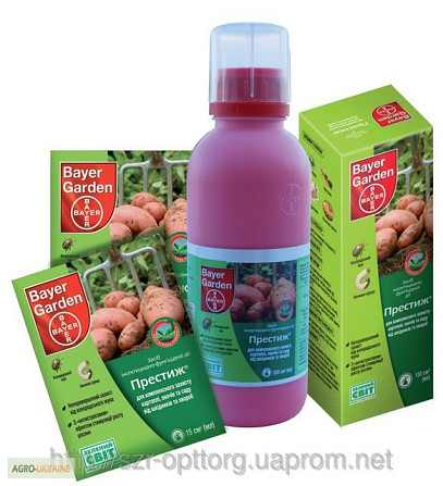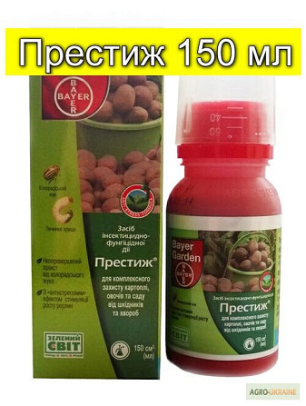 Продаю Протравитель Престиж Виробник: BAYER Ціна: - 20 мл - 54,40 грн - 60 мл - 155,90 грн Престиж - це системно-контактний препарат для обробки клубнів картоплі та саджанців плодових, декоративних і лісових культур перед посадкою, а також для замочування кореневої системи помідорів, баклажанів, пе...