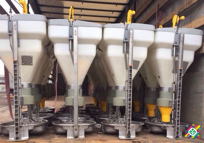 Автоматична годівниця для свиней: кормовий автомат Double Swing (виробництво - Данія) Технічні характеристики: - Подвійний бункер ємністю 180 л дозволяє зберігати та подавати різноманітні види кормів для свиней, забезпечуючи їм належне харчування. - Система зволоження корму сприяє поліпшенню смаков...